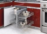 Rev-A-Shelf , Maximizes space in blind corner cabinets and allows the user full accessibility to the entire unit. 100# rated full extension. Ball bearing slides. Easy to assemble and installs for either left or right-handed applications. Fits most 45 blind corner cabinets. Comes with (4) chrome baskets: 11-3/4 W x 16-1/2 D x 4 H. Easy installation to the cabinet floor. Minimum requirements: 14-3/4 door opening width,20-1/4 cabinet depth and 21 door opening height. Color: Chrome. Dimensions: 26-1/4 W x 20-1/4 D x 21 H. (Read More)