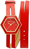 BCBGMaxAzria BG6409, Casual watch, Japanese quartz movement, Polished gold-tone hands and dot markers, Red dial, Polished stainless steel gold-tone hexagonal case and crown, Polished stainless steel silver-tone caseback, Raised crystal with diamond cut accents, Red genuine leather double-wrap strap with polished stainless steel gold-tone buckle, Water resistant ...